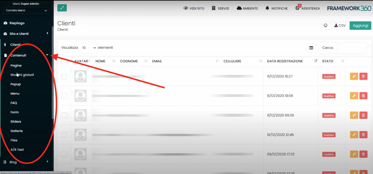 Dans la section Clients il est possible d'insérer toutes les informations sur vos clients également via csv.