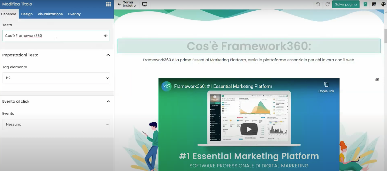 Une fois dans la sous-section Pages, pour en modifier une, il nous suffira de cliquer sur la page souhaitée, à ce moment l’page s’ouvrira avec à côté un pratique visual builder dont nous nous servirons pour effectuer les modifications.