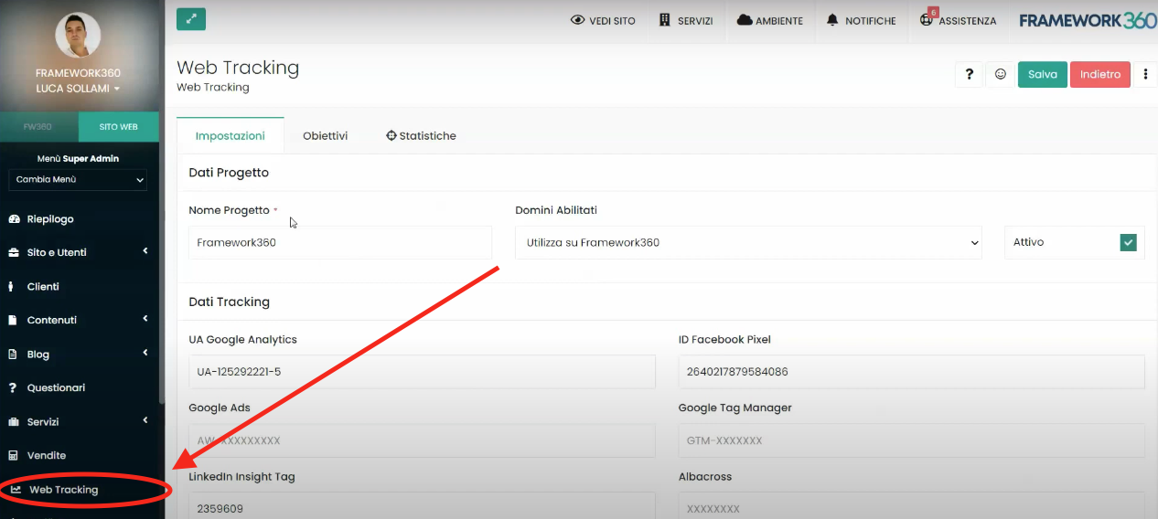 Le module Web Tracking est l’une des pointes de diamant de Framework360 car, en plus de permettre d’insérer toutes les données de suivi de tiers (comme le pixel de Facebook), il permet de suivre les conversions de manière extrêmement simple comme, par exemple, les conversions d'appels ou l'envoi de formulaires.