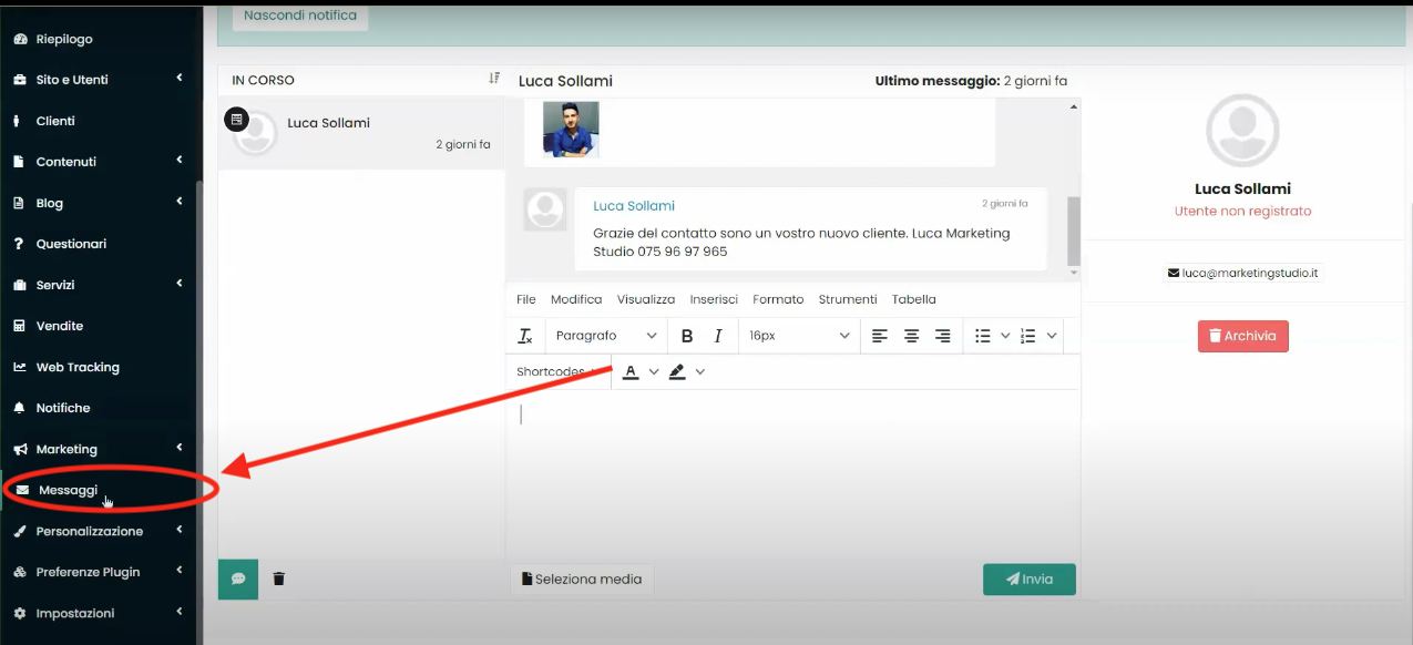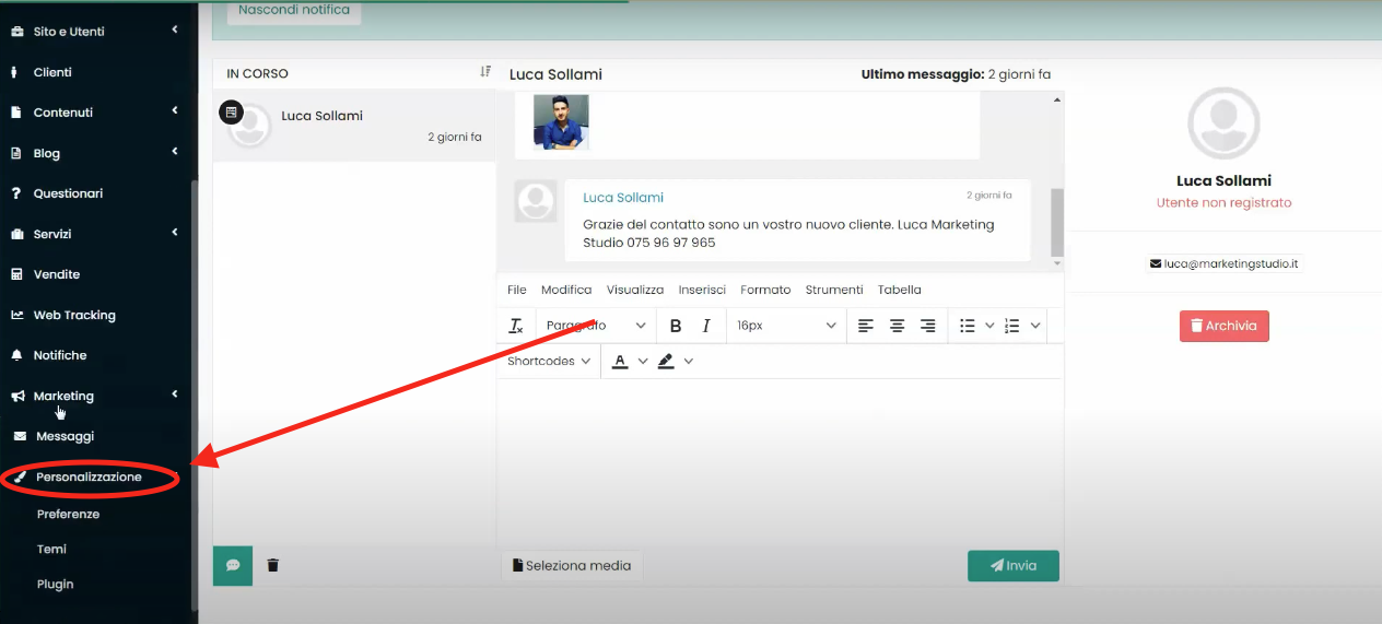 L’ultime sous-section de la section Contenus que nous allons analyser est la sous-section Formulaire, avec elle vous pouvez créer un formulaire que les visiteurs du site web pourront utiliser pour laisser leurs coordonnées, de la création d'un form je m'en suis occupé analytiquement dans un’autre guide que tu peux consulter en cliquant ici.